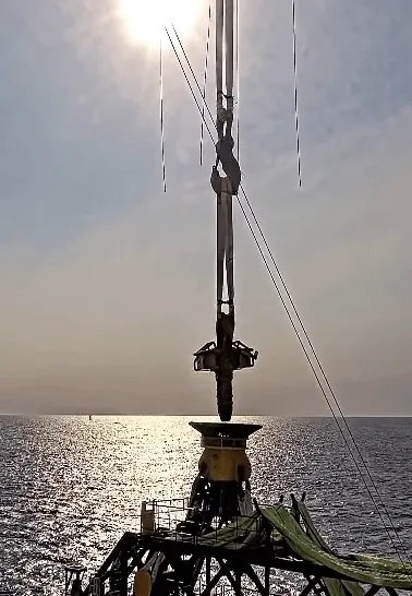 The heave compensation is controlled by adding our inline Active Heave Compensator (here the Heave Chief 1100, not shown in video) to the crane hook of a standard heavy lift crane. In this case, it is a crane on the jack-up vessel SEA INSTALLER, but it could be a floating crane as well, active on floating-to-floating lifts.